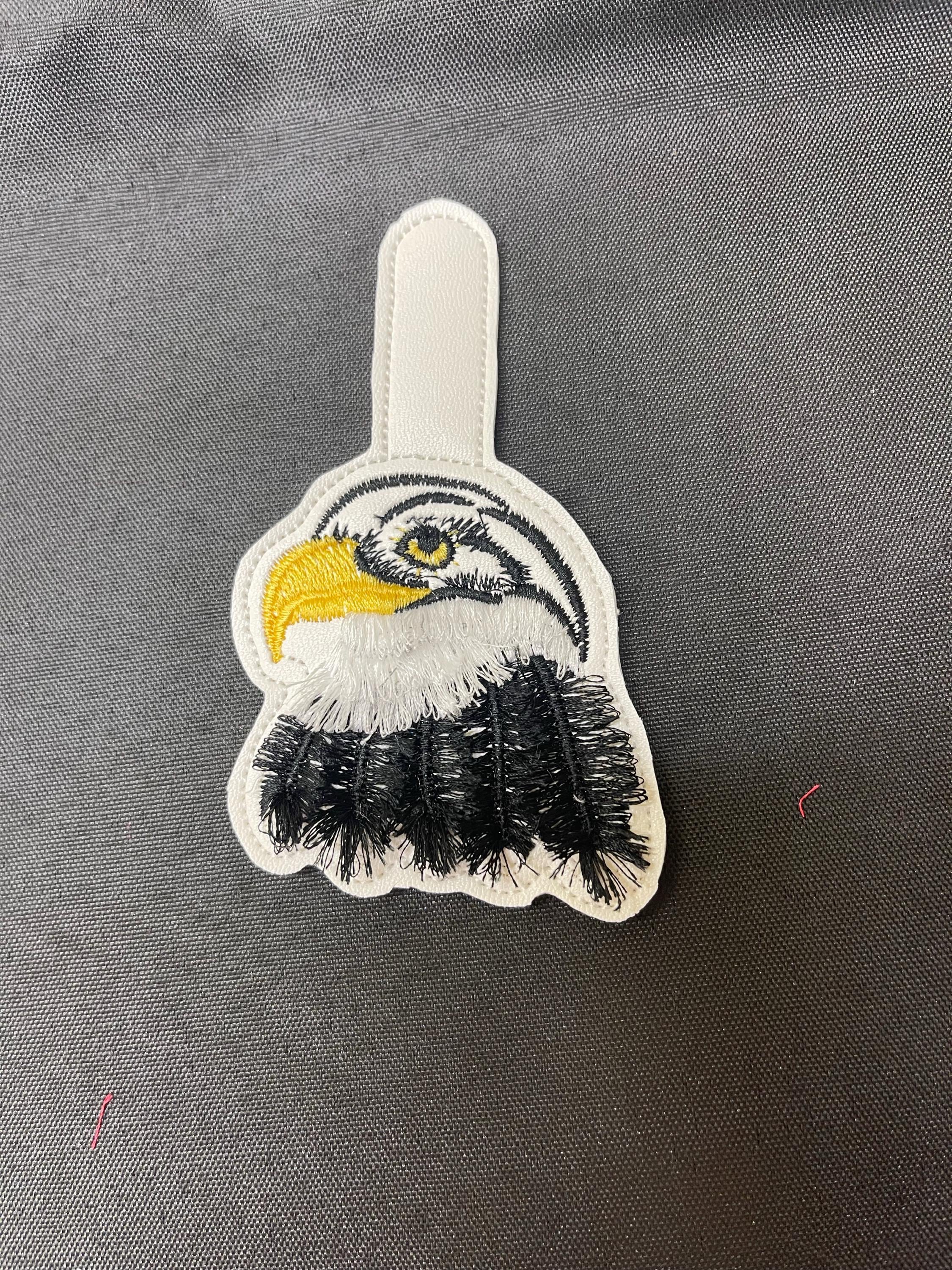Fringed Eagle key fob snap tab Eagle keychain in the hoop machine embroidery designs ITH project mascot bird fluffy fuzzy eagle gift idea