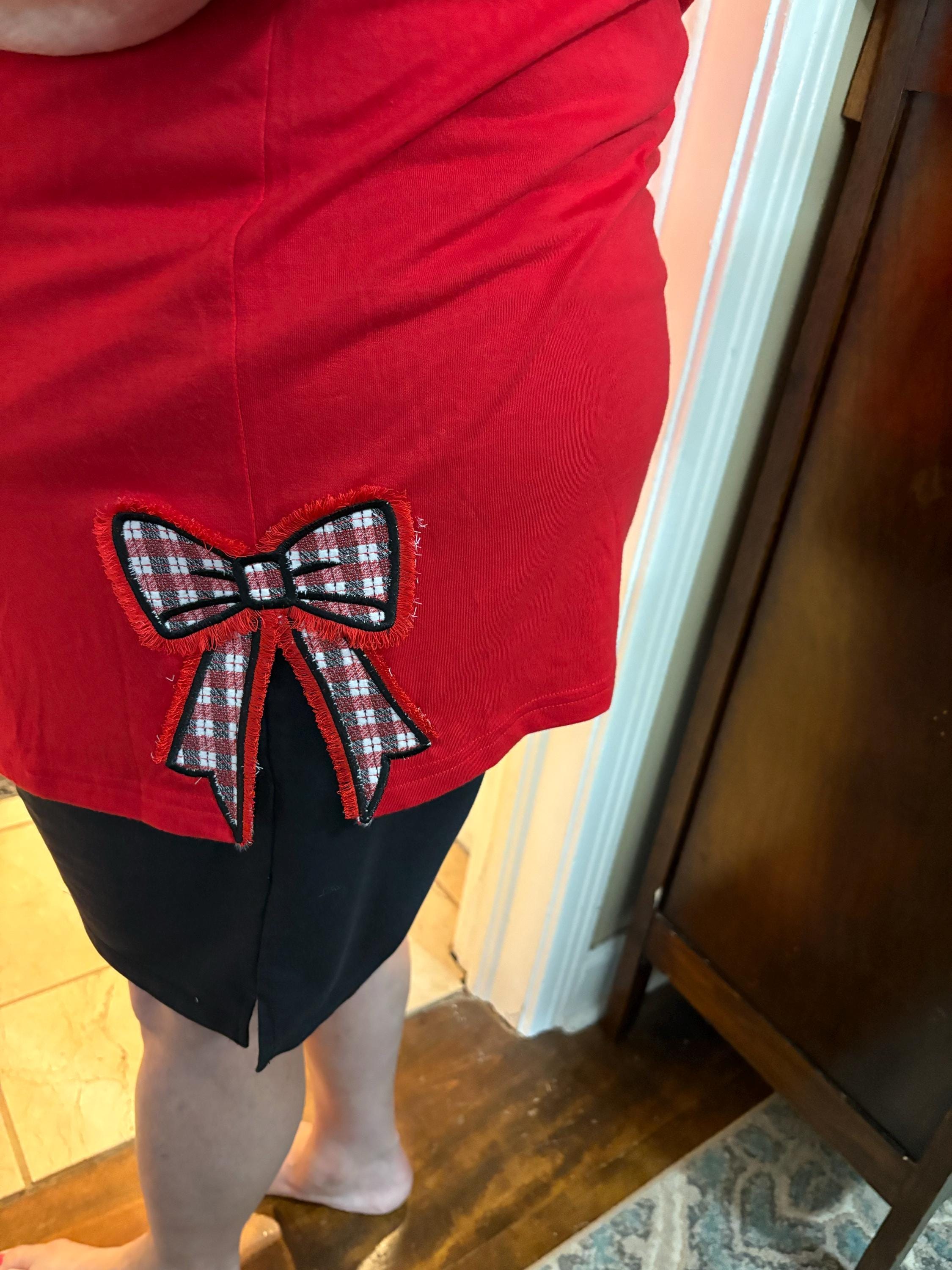 Fringed Fluffy Christmas Gingham Plaid Bow Applique Design – Perfect for sweatshirts and T-shirts! Features a split seam cutout side bow with multiple size options for versatile embroidery projects.