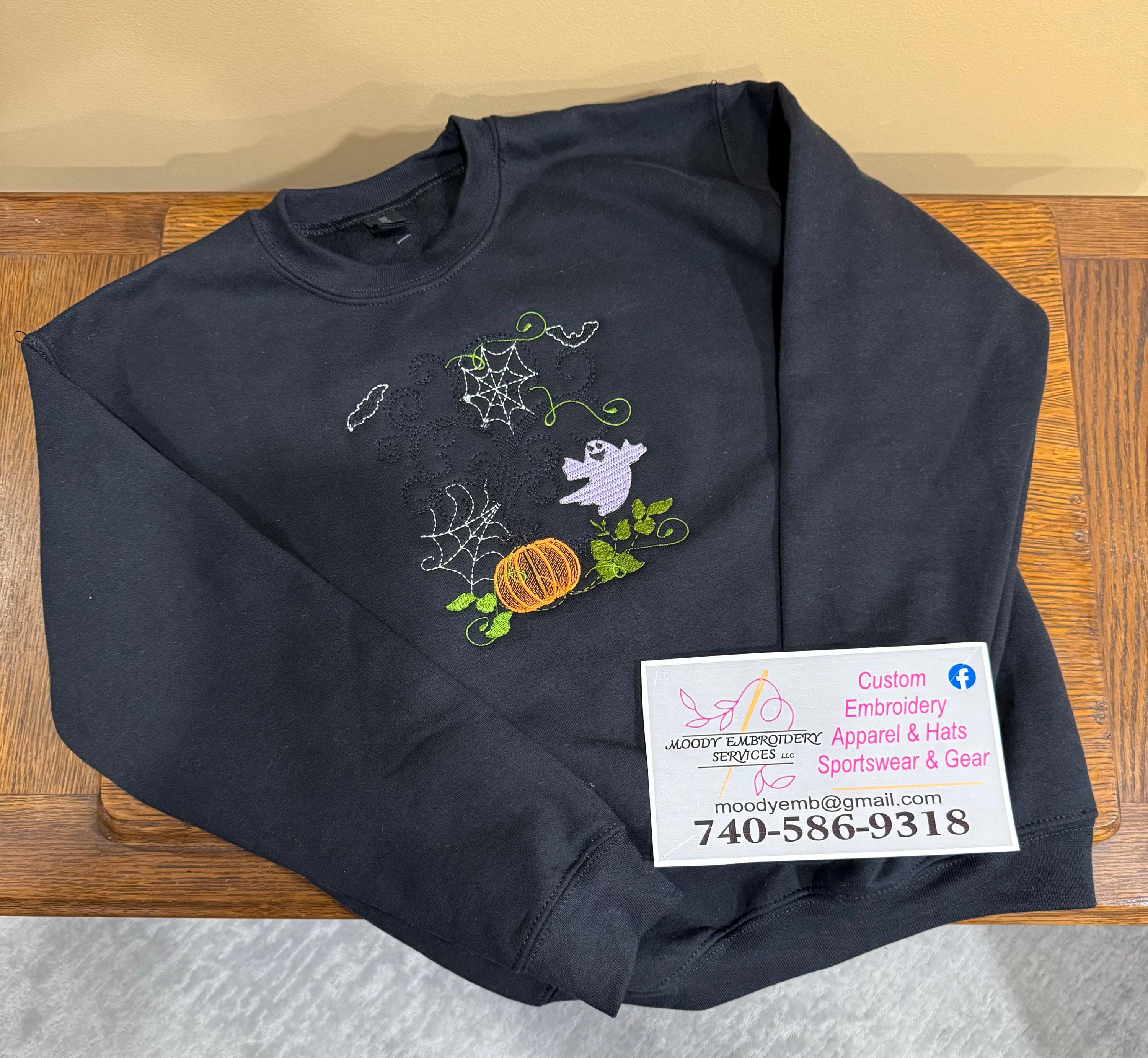 Halloween scene sketch stitch Applique machine embroidery designs for hoop 4x4, 5x7, 6x10 spooky scary Tree Pumpkin spider web bat ghost